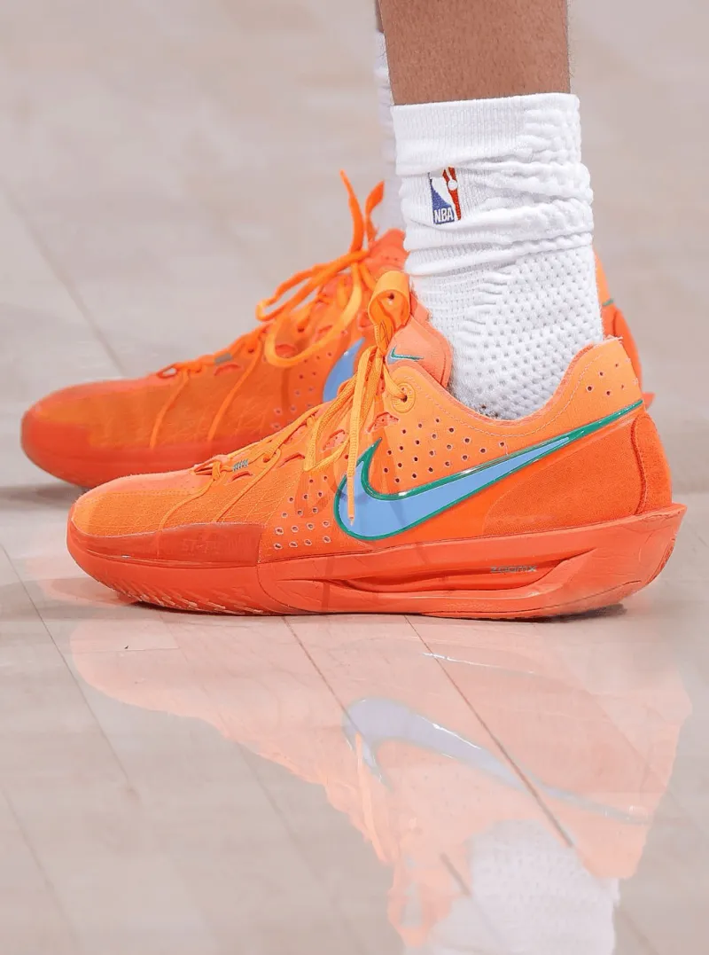 比赛中,普尔上脚橙色Nike G.T Cut3 PE。