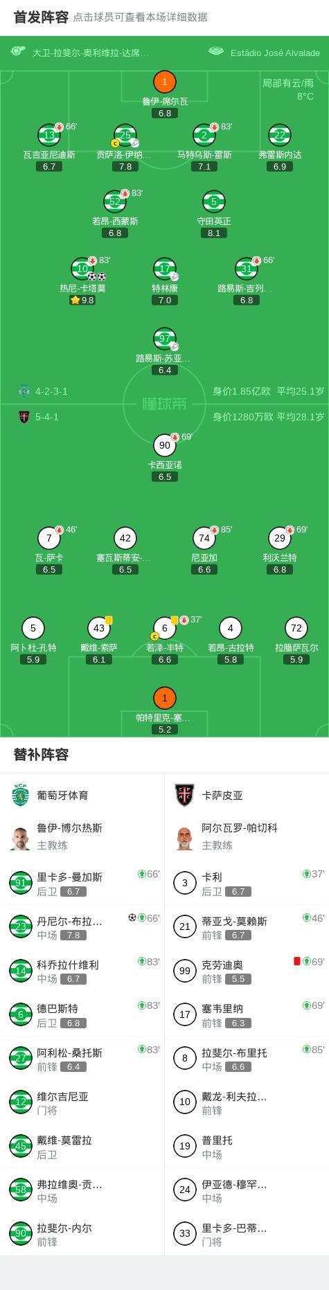 葡萄牙体育3-0大胜卡萨皮亚,热尼-卡塔莫双响,丹尼尔-布拉干萨破门