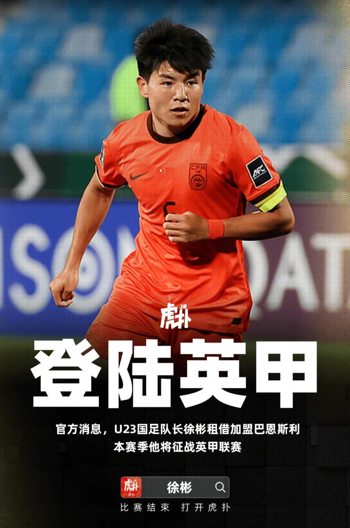 狼队一线队/青训部门官方宣布,中国中场徐彬租借加盟英甲球队巴恩斯利,租期至本赛季末。