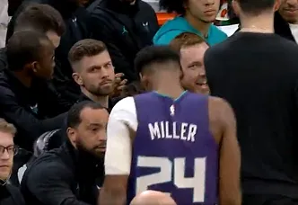第一节比赛,米勒径直杀入禁区上演精彩隔人暴扣,随后手腕不适下场休息。