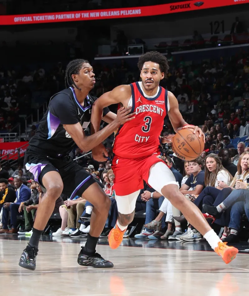 虎扑04月08日讯 今日NBA常规赛鹈鹕156-137战胜爵士。本场比赛,鹈鹕队球员乔丹-普尔出战32分钟,投篮23中12,三分球16中7,罚球4中3,得到34分2篮板5助攻1抢断1盖帽。比赛中,普尔上脚橙色Nike G.T Cut3 PE。来源:Getty Images 虎扑04月...